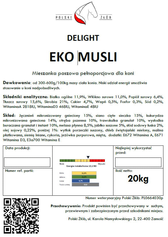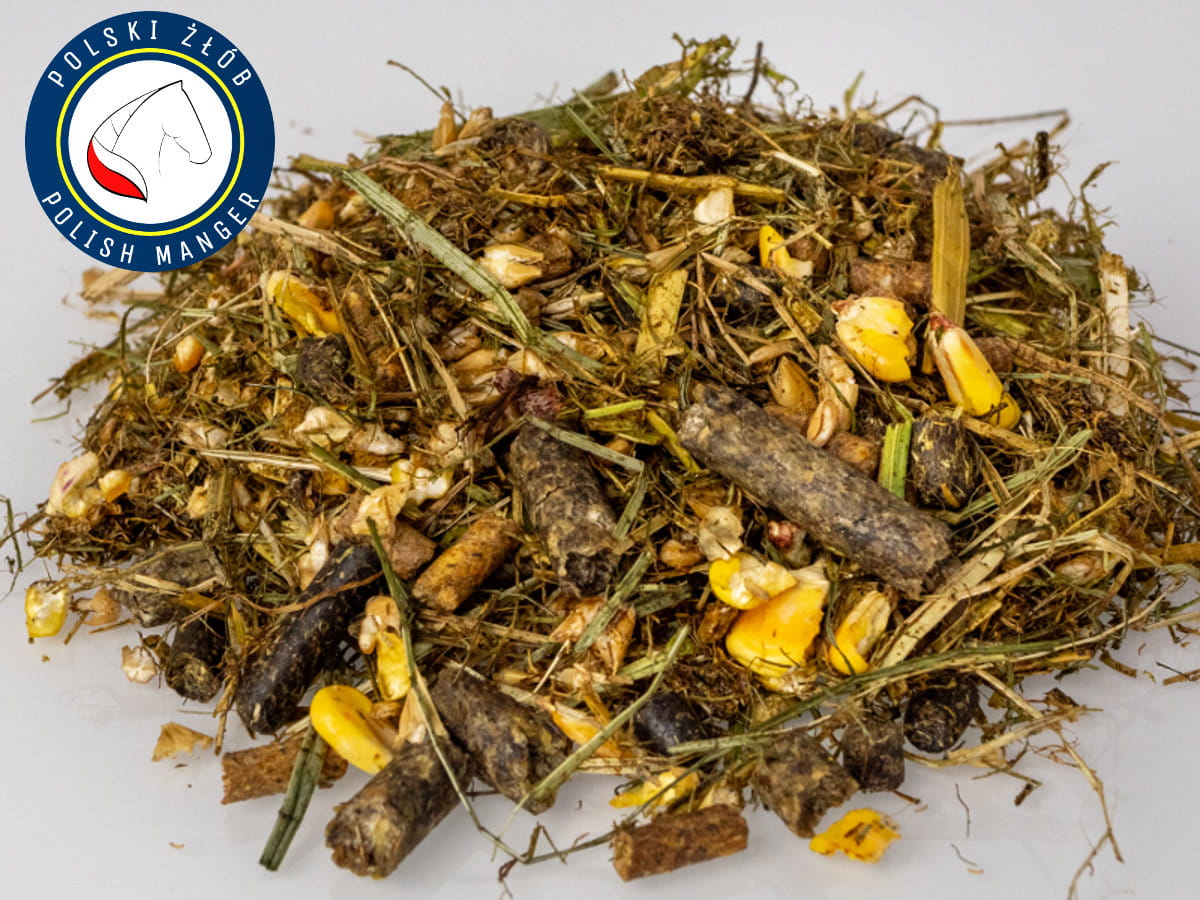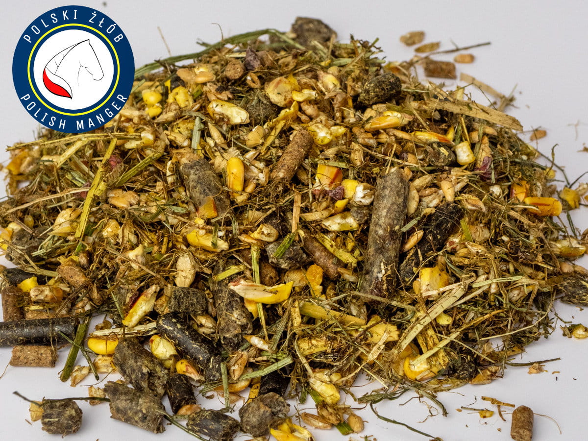 Bezowsowa, aromatyczna i włóknista mieszanka paszowa dla koni w postaci musli. Może być stosowana dla większości koni, jako pasza na każdy dzień.